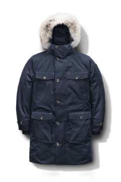 Featuring a subtle crosshatch texture and streamlined, knee-length fit, the Citizen parka is breathable, windproof and waterproof. It's packed with premium Canadian white duck down fill in the body and hood to offer optimal insulation and equipped a detachable coyote fur trim and hidden draw cord at the waist for a customized fit. Soft fleece-lined front pockets keep your hands and devices warm, while ribbed and adjustable button cuffs help lock in heat.