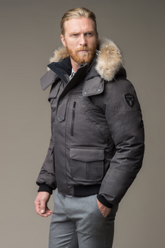 Offered in both our crosshatch material and our poly/wool, the Higgins is our mens bomber jacket with multiple pockets for ultimate storage.