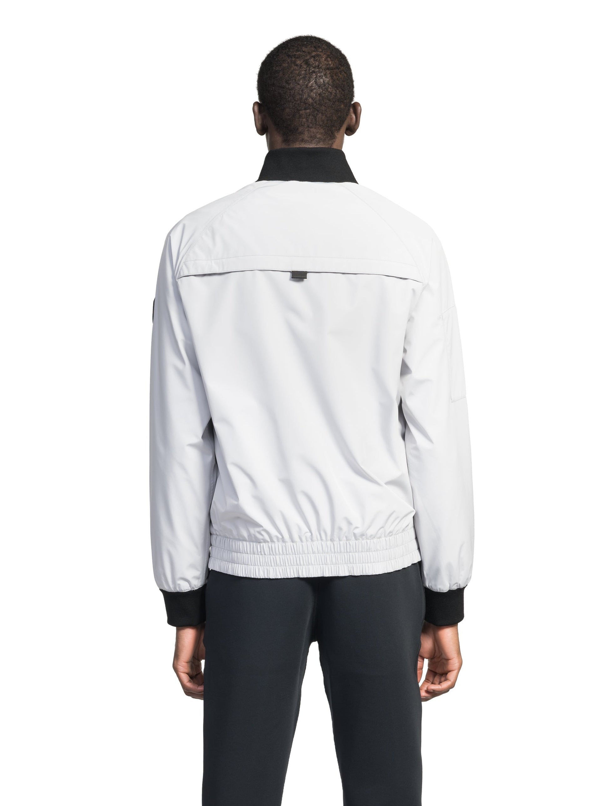 This bomber jacket is made from premium, seam-sealed fabric thats water-repellant, wind-resistant and breathable to keep you comfortably covered on inclement days. Ribbed trims lock in warmth, while two magnetic-closure front pockets and a zippered arm pocket keep your essentials securely in place.