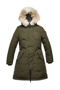 Crafted from premium 3-ply micro denier, the Payton Parka features Canadian White Duck Down, a breathable liner, and Embrace membrane for ultimate protection. This windproof and waterproof parka includes a non-removable hood, removable coyote fur ruff with framing wire, telescopic sleeve lining, and interior chest pocket for practical warmth and style.