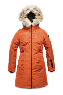 This parka, crafted from premium 3-ply micro denier fabric and Canadian Origin White Duck Down, offers ultimate insulation. Featuring a non-removable down-filled hood with a removable coyote fur ruff, it adapts to varied conditions. With an Embrace membrane, seam-sealed construction, and telescopic sleeve lining, this jacket is windproof, waterproof, and breathable. Designed in Canada and machine washable for easy care.